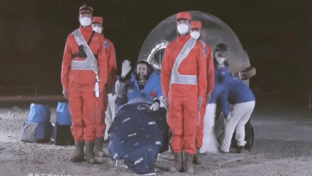北京時(shí)間12月4日20時(shí)09分,神舟十四號載人飛船返回艙在東風(fēng)著(zhù)陸場(chǎng)成功著(zhù)陸,之后三名乘組航天員陳冬、劉洋、蔡旭哲安全順利出艙,